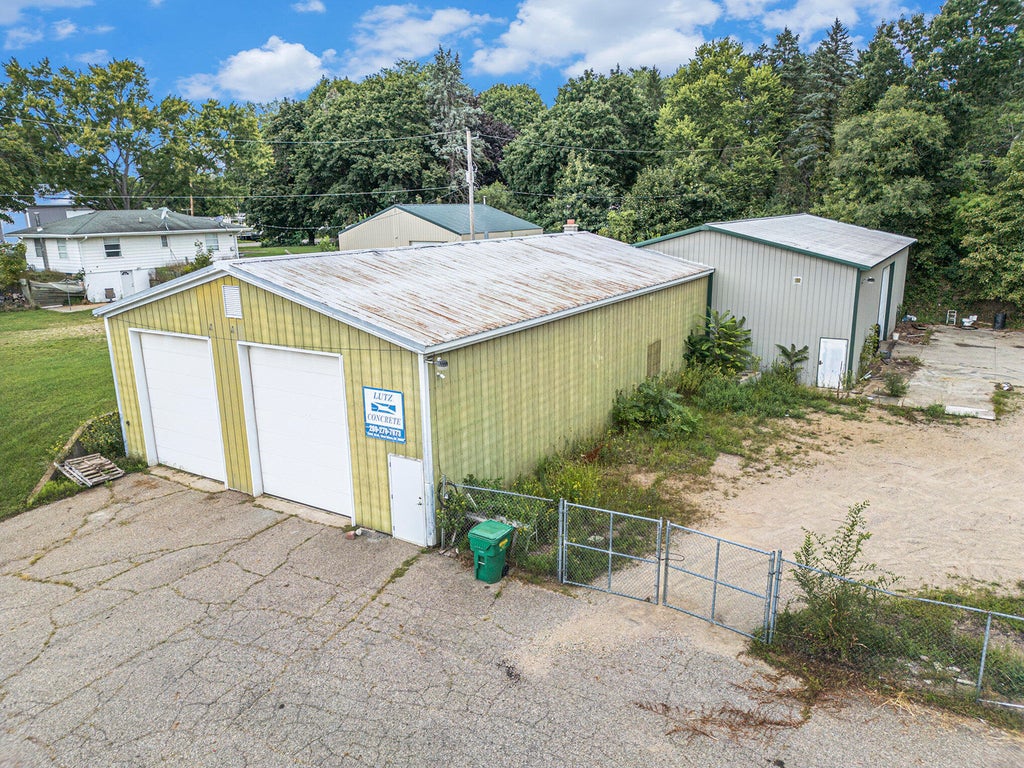 THIS 5,120 SQ.FT COMMERCIAL BUILDING SITS ON A FENCED-IN 2/3 ACRE LOT ON HIGH TRAFFIC M-86. The front building has dual 12'x14' OH doors, LARGE ENOUGH FOR A MOTORHOME, an office, half bath and tool room with a 16' HIGH CEILING and is insulated. The back building has one 14'x16' OH door, a mezzanine area and 24' high ceiling and 20' high to Beam. Both areas have gas heat.