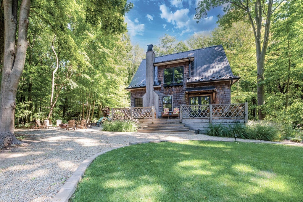 Just steps from the Cherry Beach shoreline, this Harbert cottage has been thoughtfully designed across three levels, offering four bedrooms, four full baths, and warm, light-filled gathering spaces that capture the essence of lakeside living. The main level welcomes you with a gracious living room centered on a classic fireplace, leading to a beautifully proportioned kitchen designed for both cooking and connection. The gorgeous fenced yard with hot tub and built-in pool with spa provides a welcome oasis for those that prefer to cool off or lounge in the sun at home. With a current short-term rental license, this home has become a sought-after retreat for guests drawn to the charm of Cherry Beach--renowned for its wide, sandy shoreline and timeless beauty. Whether as a private escape or a potential investment opportunity, this residence offers the rare combination of design, comfort, & style!