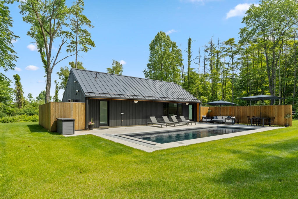 Experience the perfect blend of contemporary elegance & comfortable living in this stunning single-family residence. This custom-built home offers a luxurious lifestyle with 2 bedrooms, 2 bath, nicely designed open living space with a modern kitchen offering high end appliances. The kitchen is a chef's paradise equipped with expansive quartz countertops and center island...making it ideal for both everyday meals and entertaining guests. The outdoor space includes a large patio, amazing volcanic black heated in-ground pool with Integra auto cover system, plenty of sunshine, and Sonos speakers with amp will add to your fun. If that doesn't wow you, then walk the beautiful 5.73 acre property with trails and 165 ft of river frontage that can have a dock or be cleared for your enjoyment...The setting is gorgeous and just minutes from Saugatuck/Douglas, Shultz Park, boat launch and so much more. This home could be used as a rental and other homes in the area rent very well and for top dollar. Just check with the city and get it certified. Excellent opportunities with this home.