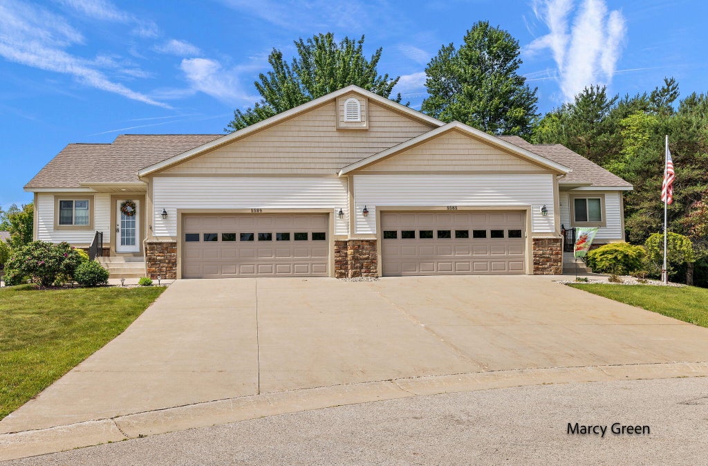 New Price!! Open House 9/7 Sunday from 11am-1pm!! Enjoy living in this tight knit community full of people who relax at the community indoor salt water pool/hot tub, work out in the fitness center, walk along the pond, catch and release fish, rent the event center for $50, or grab a book and chat in the library! This condo is just down the street from all of that! While at home you will love the open floor plan from kitchen to dining to living and four seasons room to the deck. Primary suited, den/bedroom and full bath on main. Fully finished lower with family room, bedroom, full bath and walkout! Seller is generously leaving the four season room furniture! Washer and dryer stay! Two stall garage and plenty of storage in the lower workshop/furnace room. Workshop bench in lower and barstools upstairs stay with condo.