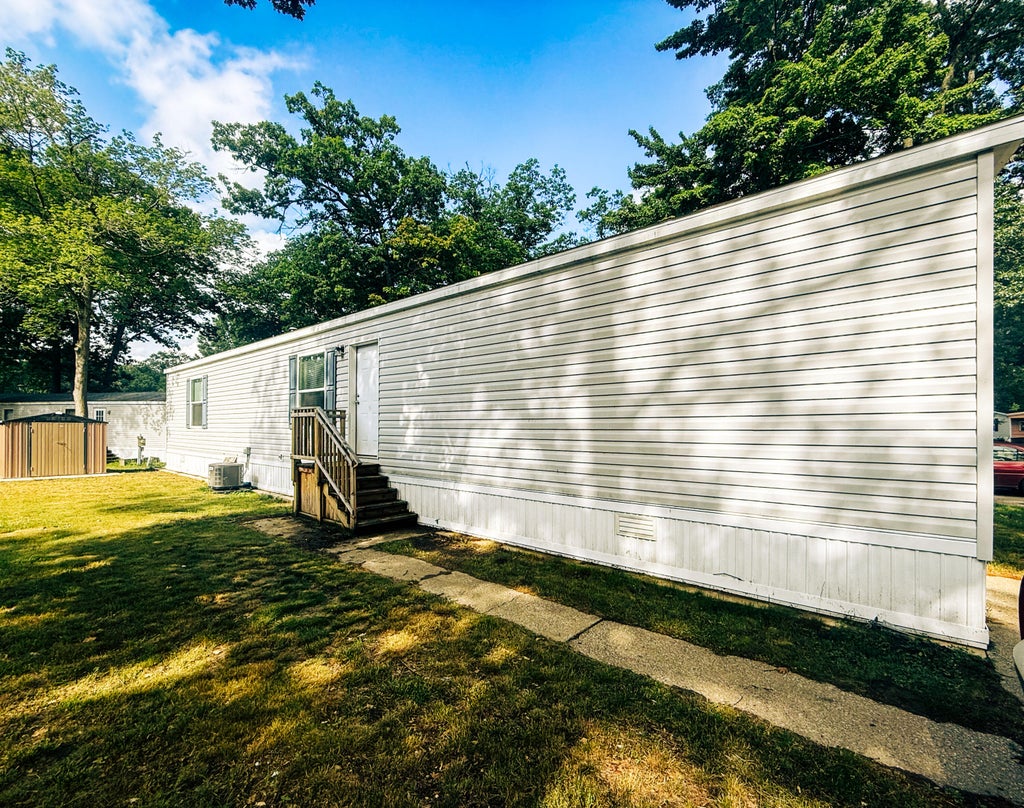 Welcome to this beautifully appointed 2023 Champion-built manufactured home located in the desirable Hidden Oaks Community and Fruitport School District! This 3-bedroom, 2-bath home features a spacious open floor plan, including a large living room and a modern kitchen with bar seating--perfect for entertaining. The generously sized master suite offers a walk-in closet and private bath, while the oversized laundry room adds convenience and storage. Central air keeps the home comfortable year-round, and a shed is included for your outdoor needs. Enjoy community perks like free WiFi and cable, a tucked-away playground, and a pet-friendly atmosphere!