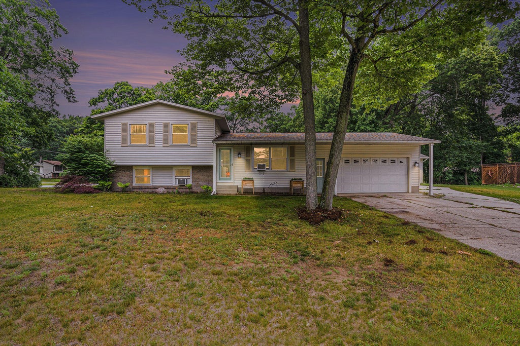 Lovely Neighborhood for this home. Large lot on treelined street, this home features 3 bedrooms, 1.5 baths, living room, family room, dining area, kitchen, and mudroom leading to the 2 car attached garage. Private, fenced in back yard and an EXTRA 2 car garage with attached HEATED WORK SHOP! Kitchen with granite counters, tiled backsplash and tile flooring. Dining area with sliders to newer deck outside. Bath with subway tiled shower, solid surface counters and soft close cabinetry. New heating/boiler system for quiet, hot water heat was installed in 2023. Roof was replaced in 2021. Great package in terrific location, Spring Lake School District and easy access to all local amenities.