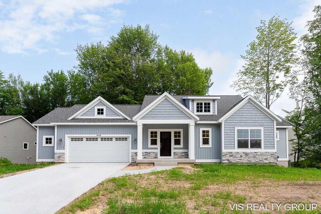 New construction at Arcadia, this Ranch Style home is built by the Award Winning Baumann Team. Featuring and 1500 square feet finished on the main and 920 finished in lower level complete with Main floor laundry along with 2 bedrooms, 2 baths, Cathedral ceilings, spacious primary suite with walk in closet, dual sinks and gorgeous shower. You will love the ease of main level living! This open concept home features stainless steel appliances, a large pantry, a quartz kitchen countertops and 2 stall garage. The finished lower level boasts 2 more bedrooms, full bath and large recreation room! With easy access to the paths leading to the Spring Lake aquatic center and state of the art gym at Jeffers Elementary andand Spring Lake High School. Arcadia Woods strive to meet the needs ofevery age and lifestyle. Providing fishing docks, community pavilions, beaches, fire pits, park, and expansive green space provides endless opportunities to enjoy your new neighborhood. The luxury of a new concept community with the feel of a traditional Spring Lake neighborhood, come experience all that Arcadia has to offer!