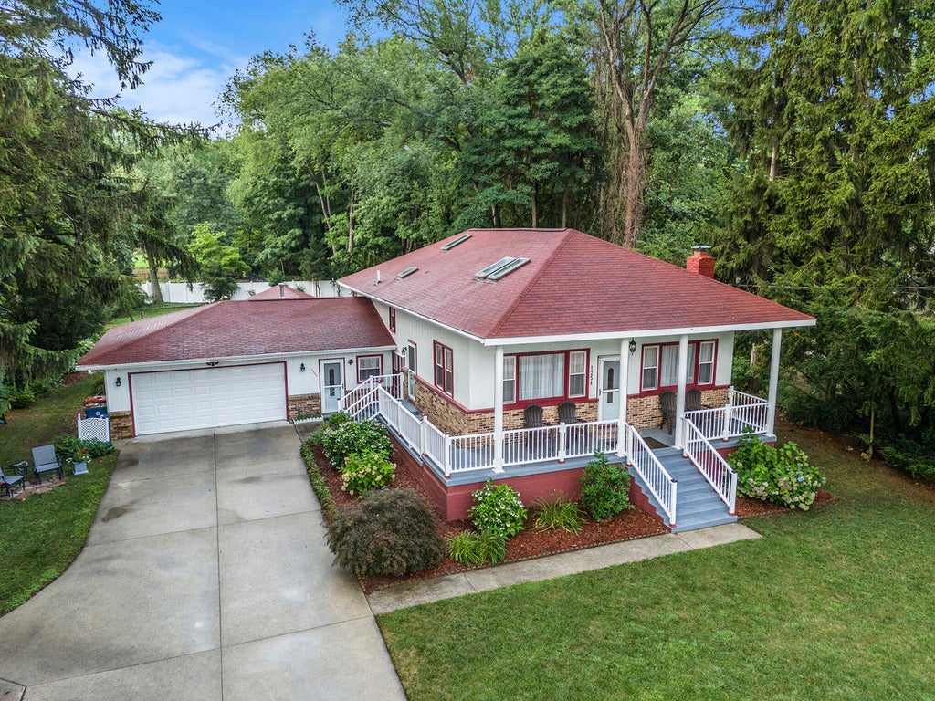 Amazing three bedroom two bathroom home across the street from Lake Macatawa on desirable South Shore Drive. It is a short distance from public boat access, a quaint neighborhood market, and Lakeview Park near the home. This charming, 2935 sq ft home has been freshly painted throughout and is move-in ready. It offers water views of Lake Macatawa, the perfect blend of convenience and relaxation. The home features a beautiful wrap around porch and upon entering there is abundant natural light flowing through the numerous windows and skylights in the living room with vaulted ceilings and gas fireplace. The main level also offers an updated kitchen with granite counter top and stainless steel appliances, a dining room, two spacious bedrooms with ample closet space, and a full bathroom. Theprimary suite upstairs boasts expansive closets, a bonus craft room, a full bathroom with a separate glass walk-in shower and Jacuzzi tub, and a separate sitting area overlooking the living room. The finished basement offers an additional living space! The home features a combined mudroom/laundry room with back yard access to a covered porch with two lighted ceiling fans, fenced in backyard, a covered back barbecue area, brick fire pit, and plenty of space for entertaining nestled in a private setting. This home blends comfort and charm in an unbeatable location.