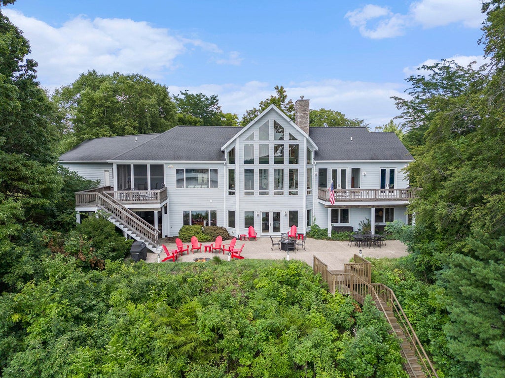 Magnificent 5-bedroom, 3.5-bathroom residence--including a bunkroom and private office--nestled on the tranquil shores of Lake Allegan, offering 4,850 sq ft of thoughtfully designed living space. The main floor showcases immaculate Brazilian tiger wood flooring and a spacious primary suite with a private office or sitting area, all framing breathtaking water views. An open-concept layout is enhanced by soaring ceilings, custom built-ins, and luxurious finishes throughout. The gourmet kitchen features quartz countertops, stainless steel appliances, and seamless access to a charming screened porch, while a generously sized laundry room adds convenience. Outdoors, an expansive patio invites elegant lakeside gatherings, with a gently sloping lawn leading directly to the water--perfect forlaunching your boat and embracing the lake lifestyle. Additional highlights include a new dishwasher, washer, and second refrigerator, a scenic loft area, a full bar with beer tap, a Jacuzzi tub, and panoramic lake views from nearly every room. Located within easy reach of Saugatuck, Holland, Hamilton, and downtown Allegan, this exquisite property offers the perfect balance of privacy and accessibility. All furnishings are negotiable, presenting an opportunity for a truly turn-key purchase.