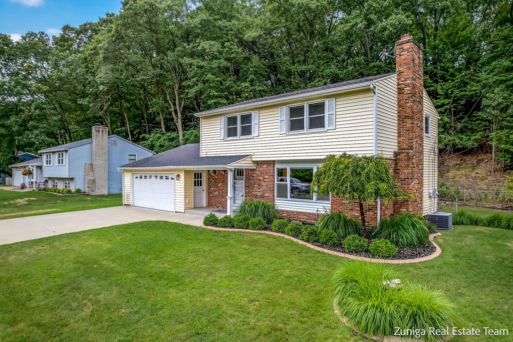Situated in a highly desirable Norton Shores neighborhood within the Mona Shores School District, this home offers easy access to everything Muskegon has to offer. From Lake Michigan and nearby parks and trails to downtown dining and entertainment, the location is truly ideal.Inside, the beautifully updated kitchen stands out with quartz countertops, tile backsplash, ceiling height cabinets, under cabinet lighting, pantry, and GE Cafe black stainless appliances including a double oven and downdraft cooktop. The main floor also features a bright living room with a gas fireplace and large picture window, a formal dining room, and a bedroom or office next to a full bath with a barrier free tile shower and rain showerhead. Upstairs you'll find four generously sized bedrooms with wood floors and a full bath with double vanity, tile flooring, and a jetted tub. The basement is partially finished with a family room and fireplace, while still offering plenty of storage.The exterior is just as inviting with a covered front porch and a private backyard retreat featuring a Trex deck, hot tub, fire pit, and shed. The attached two stall garage is finished with epoxy flooring and slatwall panels, making it a perfect man cave or workshop. This is a move in ready home in a safe, quiet neighborhood close to Lake Harbor Park, Dune Harbor Park, Hoffmaster State Park, Pere Marquette Beach, and more.
