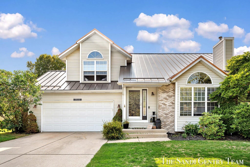 Welcome to this thoughtfully updated 4-bedroom, 3.5-bath home on a desirable corner lot in sought-after Gaines Township. The open-concept main floor features a beautifully updated kitchen with granite countertops, stainless steel appliances, and a large island with seating. A spacious dining area and inviting living room with soaring ceilings, a cozy fireplace, and abundant natural light, create the perfect setting for gatherings. Rich walnut wood flooring flows throughout, tying the spaces together with warmth and elegance. Sliding doors open to an expansive Azek deck, where your private backyard oasis awaits. The fenced-in retreat features an in-ground pool, hot tub, and multiple lounging areas, ideal for summer entertaining, relaxing in the sun, or hosting unforgettable gatherings with family and friends.Upstairs, the expansive primary suite is joined by two additional bedrooms and a full bath. The finished lower level provides even more living space with a bedroom, full bathroomand family or game room, offering the perfect setup for guests.