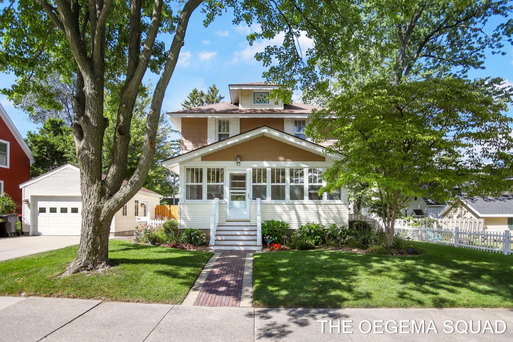 Fully remodeled with timeless charm! This stunning 4-bedroom, 2-bath home in the heart of Downtown Holland blends historic character with modern updates throughout. The expanded kitchen features walnut countertops, soft-close cabinetry, a cozy breakfast nook, and pantry. A full main floor bath was added, complete with a soaking tub, while the upstairs bath has been beautifully updated as well. Enjoy the spacious enclosed front porch with panoramic window views, or step out back to your private backyard oasis featuring a new covered deck, underground pool with new liner and heater, and a pool house--perfect for entertaining. The updated garage offers a larger door, new windows, side access, and finished interior, ideal for gatherings or extra flex space.The lower level has been finished with a cozy family room and a stylish new laundry area. Most windows have been replaced, & two stained glass windows add charm. Don't miss the inviting gas fireplace in the breakfast nook!