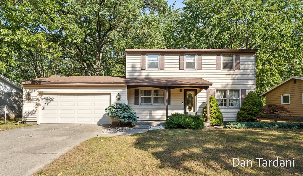 OPEN HOUSE SUNDAY OCTOBER 12TH 12:30-2 PM. Classic 4 bedroom Colonial home with a very private backyard in the Mona Shores school district. Main floor has a spacious living room that could host your dining guests, a den/formal dining/office with hardwood floors and the kitchen. Upstairs are 4 bedrooms, all believed to have hardwood floors under the carpet (buyer to verify) and a good amount of closets along with a spacious bathroom. The full basement offers so much potential and is divided for a rec room area. The furnace and water heater were installed in 2021 so should provide years of peace of mind. There is a 2 car garage, patio area in the back yard, underground sprinkling and central AC. There is a small strip of land beyond the lot believed to be owned by Norton Shores along with undeveloped property behind that, offering additional privacy. Great location only 1.5 miles to Dune Harbor Park and less than 3 miles to either Lake Harbor Park or Kruse Park.