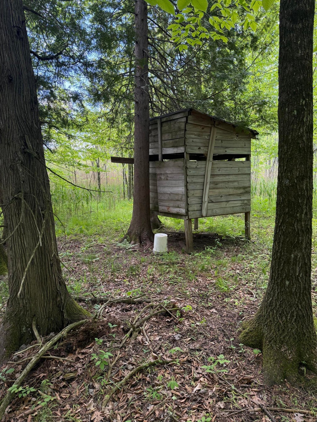 Wooded 80 acres in Oceana County, There have been a lot of big bucks taken off of this property. It has a stream running through it and a pond stocked with Bluegill and Bass. Insulated pole building with power, a woodstove, and running water. It also has multiple elevated blinds. The perfect hunting camp.