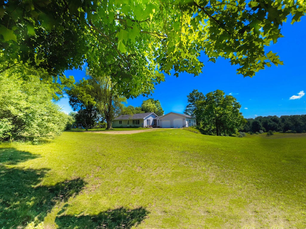 A Quiet Slice of Northern Michigan, Peaceful Country Living on 9+ Acres.Down a quiet country road, surrounded by tall trees and open sky, you'll find a place where time slows down and every view feels like a postcard. Set on just over 9 acres, this beautifully updated 3-bedroom, 1-bath ranch invites you to settle in and stay awhile.Sunlight pours through large Andersen windows, filling the open layout with warmth and natural light. The home flows easily from room to room, with a spacious mudroom leading to the large attached 2-car garage. Below, a full walkout basement offers space to create, store, or expand. Enjoy year-round comfort with both a propane boiler and an outdoor wood boiler.Outside, the land offers a beautiful mix of open and wooded areas. Mature apple, willow, walnut, pine, and maple trees surround the property bringing both shade and possibility. A powered cement pad provides a flexible spot for your camper, basketball games, or evenings spent under string lights and stars, cozy around a glowing bonfire.