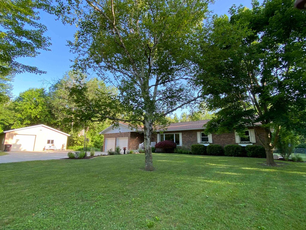 GORGEOUS ALL BRICK RANCH HOME! This beautiful and meticulously maintained home offers quiet country living at its best! Offering 3 bedrooms, 2.5 baths on a gorgeous and private 10.87 acre parcel in Lincoln Township. The main floor features a spacious kitchen with beautiful Cambria countertops, custom cabinetry, stainless steel appliances, and a deep stainless steel sink. Connected to the kitchen is a large dining room with a wood-burning fireplace and access to a private fenced-in backyard surrounded by woods with well-groomed trails throughout the property. The living room and den boast huge Marvin windows that flood the home with natural light and showcase the bamboo floors throughout. Other features include custom closets in all bedrooms, Corian sinks and countertops in baths, solid core doors, a large Trex deck in the backyard, double hung windows, a 30 X 40 insulated and wired, drive-through, pole barn with second driveway. For an added bonus, there is a billboard on the SW corner of the property that renders $2,000.00/yr. in fees! The partially finished basement includes two additional bedrooms, laundry room, a large pantry, family room, and storage galore! Brand new or newer to this home are the roof with gutter guards (2024), a 22 KW Generac, on-demand, whole-house, generator (2024), Bradford-White hot water heater (2021), new well pump (2023), chimney cap (2024), and Lenox furnace (2023). Welcome to country living with the convenience of I-75 and the town just 2.2 miles away. There is nothing to do but move in, put your feet up, and enjoy the abundance of wildlife that surrounds this home. Don't wait on this one!