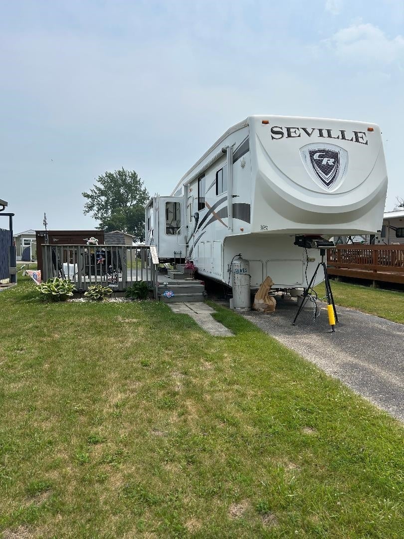 Own your own lot ! Includes 2009 35' Crossroads Seville fifth wheel. In great shape. Has a deck for outdoor enjoyment. Park has many amenities clubhouse w/outdoor heated pool, meeting room, laundry room, outside pavilion and play area for kids. Park owns 600' of beach so bring your kayaks to enjoy the lake.