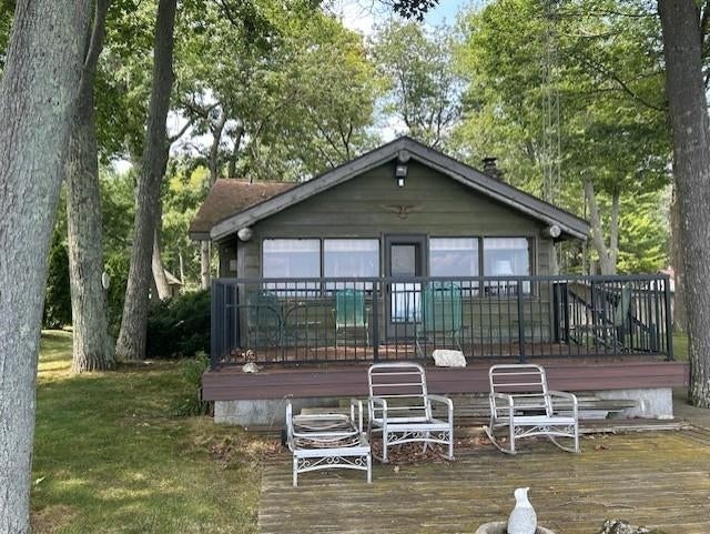 This is the adorable log cottage "Up North" that you have been looking for! 100 feet of well protected frontage on Lake Huron and a lot across the street to build the extra outbuilding for all of your needs. It has 2 bedrooms and a living area that has great views of Lake Huron. It has a deck on the front and the back. The stone fireplace has a wood insert to keep you warm and cozy on those cool fall nights. Also has a loft. A must see!