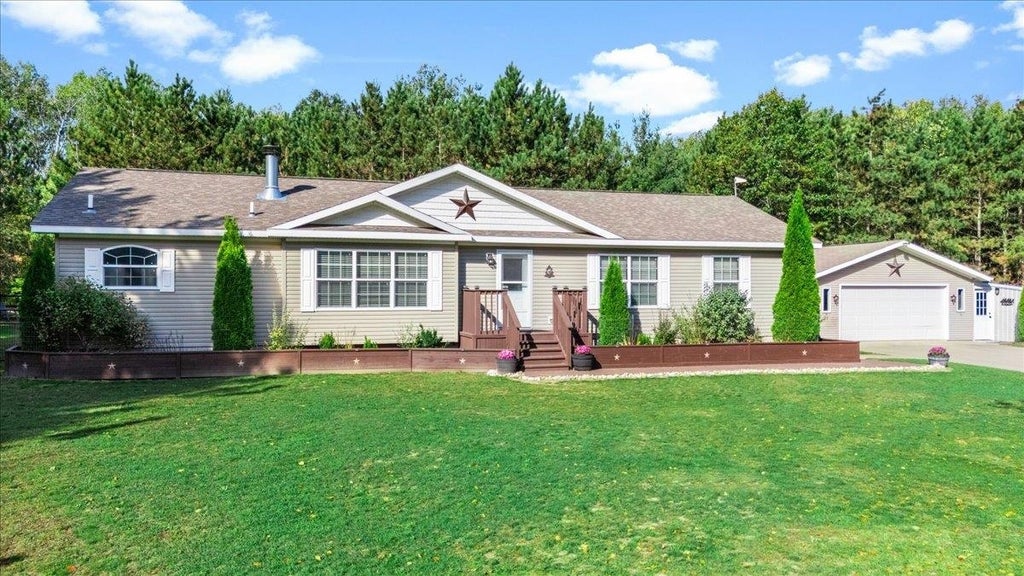 ATTENTION HORSE AND NATURE LOVERS! Immaculate newer built home (2020) with loads of upgrades!, Beautiful stone fireplace, 3 bedrooms, 2 full baths, finished 2 car garage along with a large fenced in backyard! All one level living. Exceptionally nice newly built Pole Barn (2023) currently set up for horses but could easily be turned into a dream workshop (man cave) or even an at home business. Very private and beautifully wooded 10 acres (surveyed and heavily staked!) offers a very peaceful setting, seclusion with no neighbors in sight, newly fenced frontage with gated entrance. Federal land across the street and direct access to 1000s of acres with wooded trails on State Land for horseback riding, ATVs and snowmobiling right from your driveway! This beautiful home still shows like new and features central air, all new Appliances (2023), new 5‚ Well (2020), new 50 gallon water heater (2024), huge rear deck with gazebo for entertaining, saltwater above ground pool, gorgeous Kitchen with huge island, solid wood 6 panel doors and trim throughout, large jetted tub in master bath and so much more!!! Pole Barn includes water, electric, 9 horse stalls, security camera system, tack room, concrete floor with 3/4'‚ rubber flooring in all stalls, overhead door with opener, beautiful French doors, large Hay storage room, cute covered porch and ceiling fans. Extensive high quality fenced pastures with lean-to shelters. Recreational paradise, secluded but yet only minutes from town! Wildlife galore! Close to numerous lakes, parks and boat launches. Entire property has been meticulously well cared for. Properties like this do not come around very often! Some furnishings may be available.
