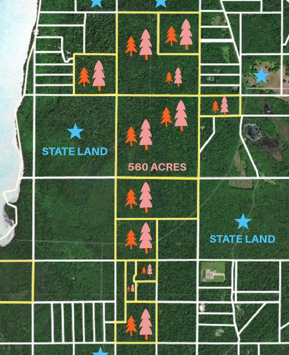 Over 560 acres of sprawling woodlands await your investment or future project. The seller of this property has put together a package of 10 contiguous parcels. State land abuts the property at various points and there are a number of access points to the property. Located west of Miller's Marsh, east of French Bay, and a few miles north of Iron Ore Bay. Some of the acreage has untouched virgin timber. The entire 560.7 acres can be purchased for 1.4 Million dollars or the seller may consider selling off parcels on the north or south end of the property separately. Individual parcels are available for purchase. Details to be provided upon request. The south end of the property has a deeded easement to the 48.97 acre parcel on French Bay, which is being sold separately (MLS#473677 ). See attached survey for specific measurements of each parcel. This could be an incredible opportunity for a Dark Sky preserve, or exclusive island retreat.