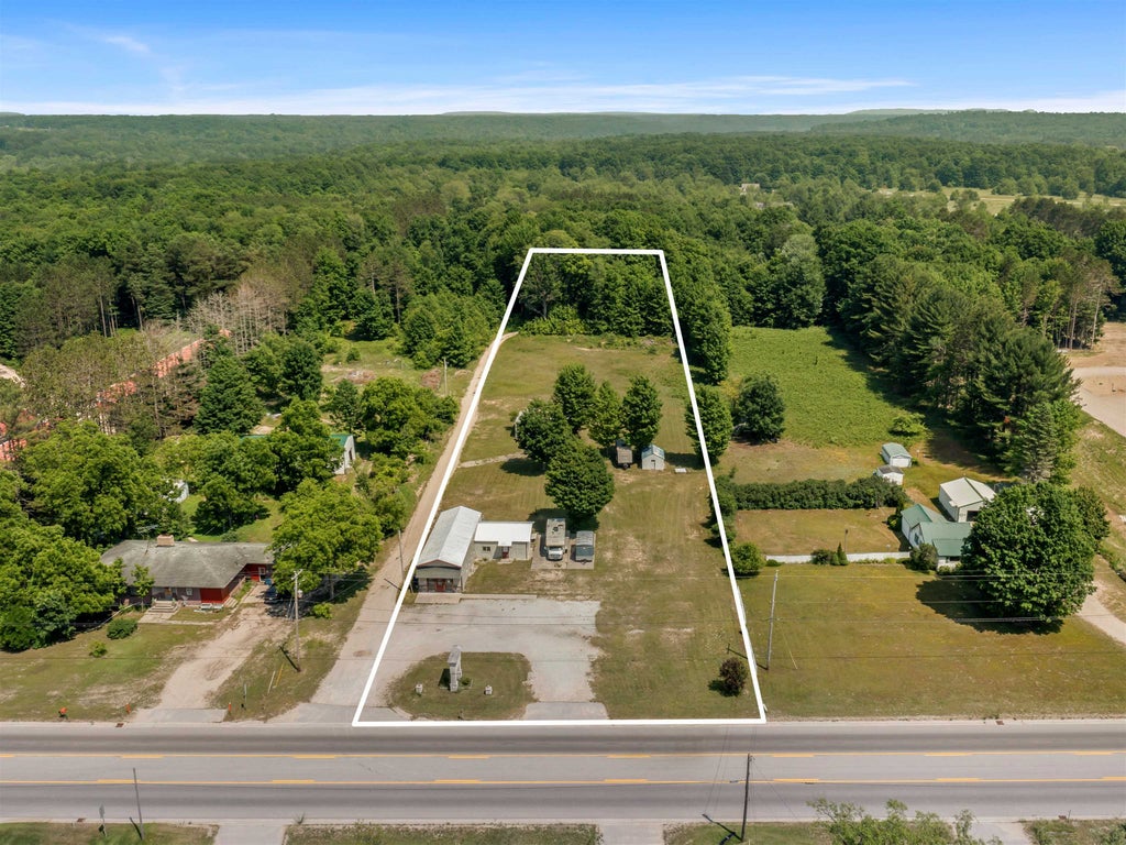 Prime 2 plus acres - Busy location near US31 & M115 intersection. Main building features sales offices in front and possible 1 bedroom apartment attached (apartment needs TLC). Pole Barn (24x26) and Storage Building (17 x 12). Zoned commercial but adaptable to many uses. Located near the new Crystal Shores Casino, the new Benzonia Township Offices and across from Timberline Campground. Growing area for business with many recreational opportunities. Near Lake Michigan beaches and marinas, Sleeping Bear Dunes, Betsie and Platte Rivers, Betsie Valley Trail, Crystal Mountain.