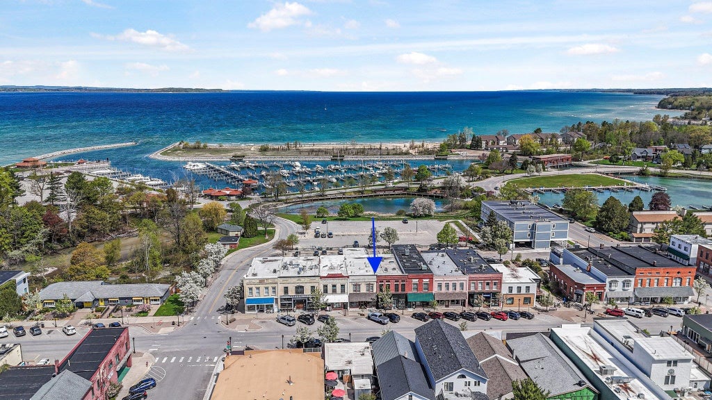 Nestled in the heart of downtown Elk Rapids, this beautiful lofted condo is a thoughtfully designed one-bedroom, one-bath residence that has a brand new kitchen and also includes a private office-perfect for remote work or creative pursuits. The property is zoned B2, allowing for short-term rentals, which makes it a unique opportunity as either a personal residence or an income-producing investment. Set within a historic building, this stylish unit features original wood ceilings, exposed brick walls, loads of natural light and warm hardwood floors that lend charm and character throughout. The open-concept kitchen and living area provide a welcoming space to relax or entertain, while large windows fill the interior with natural light. Modern conveniences include in-unit laundry, a brand new kitchen and appliances, an owners storage unit in the lower level and more. Just steps from local shops, restaurants, marina, and the beach, this home offers an ideal combination of village life and comfort in one of Northern Michigans most vibrant lakefront communities.