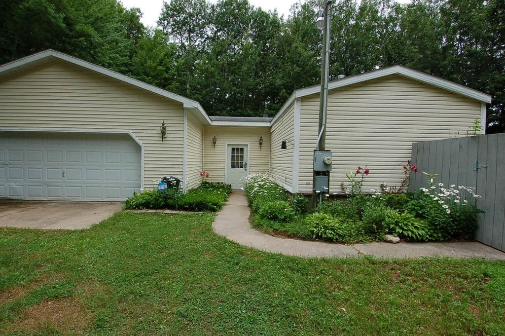 A very private setting in the woods is the location for this 3 bedroom, 2 bath, 1050 sq ft home. Home has been recently updated. Master suite with walk-in closet, whirlpool tub and also a shower. Nice covered deck, A/C and two covered portable storage tents. Includes washer and dryer and kitchen appliances. Breezeway between house and attached two car garage. $9,000 credit to replace the roof.