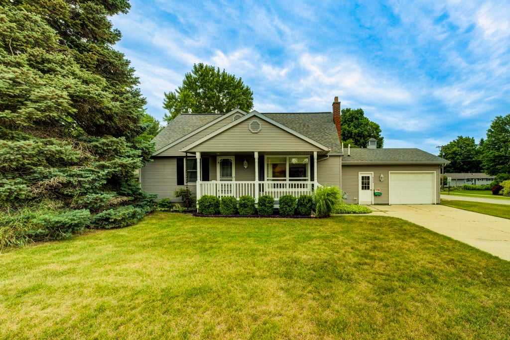 This 1 1/2 story home has been well maintained and loved throughout the years. The covered front porch welcomes you in to find an inviting living room, bright and airy. From there it is somewhat of an open concept floor plan where the dining room area flows and connects to the galley kitchen. There are several built in cabinets and cubbies for ease of organizing goods. There are 2 bedrooms and 1 full bath on the main floor. Upstairs is a lovely den area with more built-in cabinets and the 3rd bedroom with a built-in dresser. Stepping downstairs you'll be surprised to find a large rec-room with a brick fireplace plus a storage room big enough for crafts or a small workshop. You'll find the laundry area and mechanicals too. Situated on a double lot, on the corner of Fenton and Pearl Street, a great location in the village of Kingsley, walkable to everything Kingsley has to offer. *Natural Gas, Air Conditioning, High Speed Internet