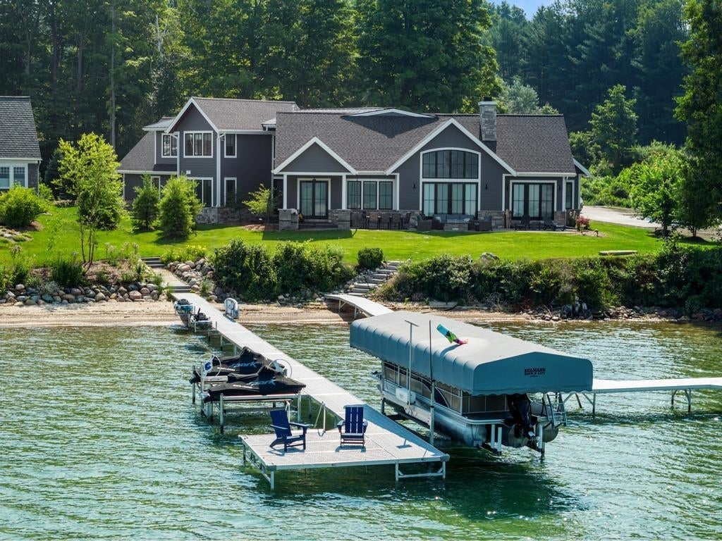 Built in 2022, this stunning 5-bedroom, 4.5-bathroom masterpiece offers the perfect blend of modern luxury and effortless lakeside living with 131 feet of pristine sandy frontage. Step inside to find soaring ceilings, solid 8-foot doors, upgraded Pella windows, and high-end finishes throughout. The chefs kitchen is a showstopper with quartz countertops and complete with a Wolf dual fuel range, Sub-Zero fridge/freezer, two dishwashers, and an additional ice maker-ideal for entertaining. Two main-level master suites feature heated floors and spa-like bathrooms outfitted with Brizo plumbing fixtures. The resort-style exterior is just as impressive: an outdoor gas fireplace near the home, built-in Solo Stove-inspired fire feature, ambient lighting, underground sprinklers drawing from the lake, and beautifully landscaped grounds. Enjoy peace of mind with a full-house Generac generator, Culligan water treatment system, and a 6-foot concrete-floored crawl space for storage. The heated garage boasts designer insulated doors and a clean finish, perfect for year-round use. Every bedroom and sitting area is equipped with a ceiling fan for comfort. This is more than a home, it's a property built for generations to enjoy Torch Lake in total comfort and style.