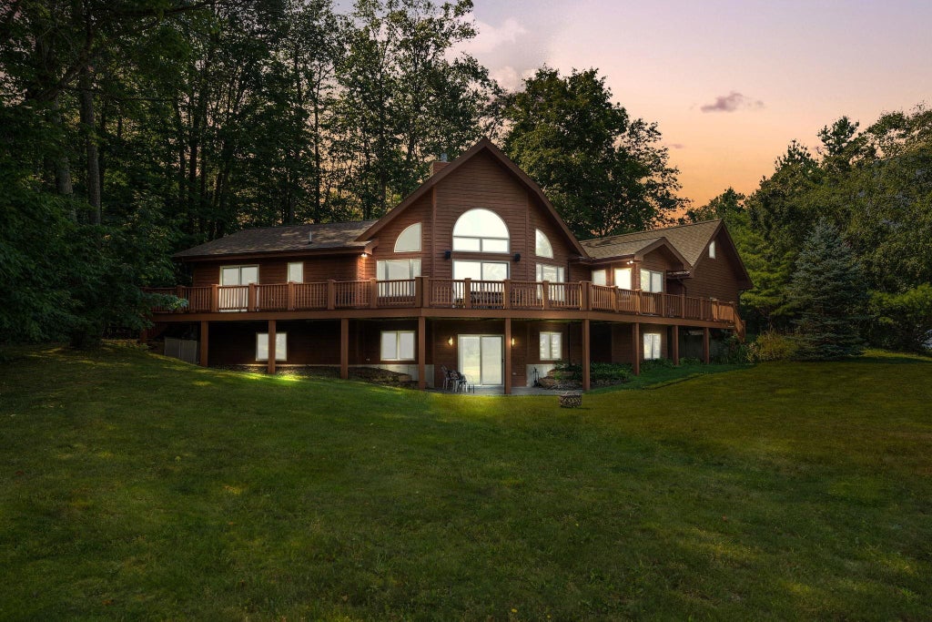 This home reflects a deep appreciation for quality and comfort while capturing panoramic views of the magnificently crafted Cedar River Golf Course. Positioned on the 7th fairway and pond is where you'll find this 3800+ square foot home. A beautifully crafted home with beamed cathedral ceilings in the living room, effortlessly blending the kitchen and dining areas, complemented by large windows showcasing stunning views of nature and the golf course. There are five bedrooms; three of which have private bathrooms. The roomy primary bedroom is on the main floor and includes an en-suite bathroom, several closets, private deck access, and is conveniently situated next to a den that can be easily transformed into an office, if desired. The second bedroom is located on the opposite side of the main floor, while three additional bedrooms are situated on the lower level. Downstairs is a family room with gas fireplace, 3 bedrooms; 2 of which are ensuites, plus an adorable space waiting to be converted into a game station or reading nook. The outside deck offers entertaining space with views to captivate you all day long. Additional amenities include an attached three-car garage with extra space above the garage, large foyer entrance, spacious dedicated storage room, plenty of storage throughout, and stunning hard wood flooring. Summer or winter, you are a short drive to the ski hills or the pro shop. This bright and clean home was built to last and is located at Shanty Creek Resort in Bellaire, Michigan. Showings to begin 8/18/25.