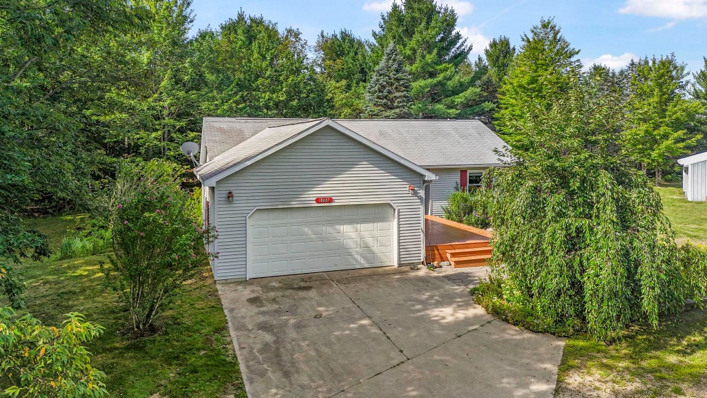 This peaceful 10-acre property in Interlochen offers the perfect blend of comfort, space, and natural beauty. Nestled just moments from state land and surrounded by outdoor recreation opportunities, the property includes a comfortable 4-bedroom, 2-bathroom walkout ranch home in a truly tranquil setting. In addition to the home, the property features two spacious pole barns (30x40 & 24x28), ideal for storage, hobbies, or equipment. A large fenced garden area is ready for your green thumb, a chicken coop for your feathered friends, and a fenced dog run provides a safe space for pets to enjoy the outdoors. Located just minutes from Green Lake, Duck Lake, Cedar Hedge Lake, and Lake Dubonnet, you'll have easy access to boating, fishing, and peaceful lake days. Several nearby golf courses offer leisurely days on the green, and the property is just a short drive from Lake Ann and the heart of Interlochen. Traverse City is an easy commute, and Frankfort is just 30 minutes away. Youre also within 20 minutes of the Betsie Valley Trail and 30 minutes from the stunning Sleeping Bear Dunes. The renowned Interlochen Center for the Arts and Interlochen State Park are nearby, offering year-round cultural and recreational opportunities. This rare combination of acreage, a comfortable home, versatile outbuildings, and proximity to lakes, trails, and amenities makes this a must-see property. Shown by appointment only. Seller will consider splitting 5 acres of vacant land which is listed separately - MLS 1932209.