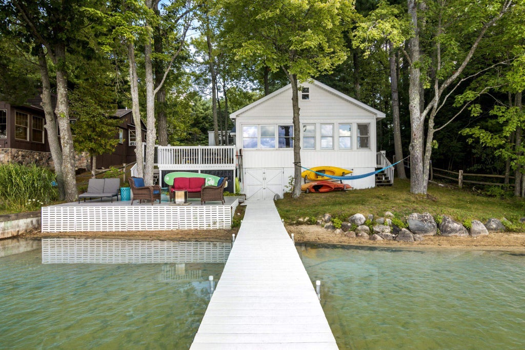 2 Cottages + Garage set on your private All Sports Lakefront with sandy shoreline & bottom + Dock. Cottages were remodeled down to the studs in 2021 (electrical, plumbing, insulation, roof, siding, new gas fireplace, flooring etc.). Enjoy the beautiful sunset views from the cottage, large decks/patio with solo stove, or the dock. Garage is 24x24 insulated & heated with work bench & brand new door opener & drive through doors for easy access for the boat, camper, ATV's/snowmobiles. STR friendly and has generated approx. 43k in income in 12 months just renting one out with sellers using approx. 25% of the time themselves. Lots of options.....rent out for income, live in one and rent one, have a guest house or in law home etc. Set on nicely shaded lot at end of street and only minutes to Traverse City, Interlochen, golf course, elementary school right down the street. All furnishings inside and out (including the toys) included for only $7000. (Full extensive list available) See Air B&B link in virtual tour line or copy and paste: http://airbnb.com/h/basslakesunsetcottage