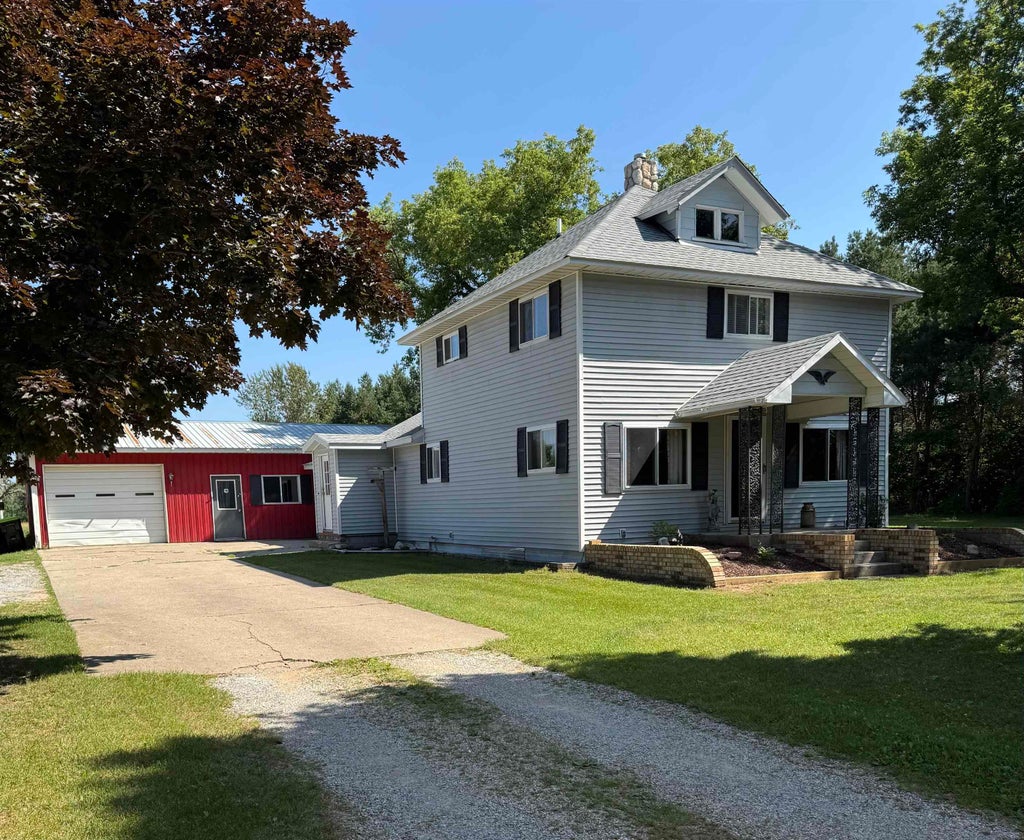 2 bedroom, 1 1/5 bath farmhouse with picturesque setting...10 acres, pond and abundant wildlife. Clean as a whistle. Approximately 2,000 finished sq.ft. kitchen w/pantry. Kitchen appliances remain. High efficiency furnace and Central Air. 2 decks. 3 season room. Huge 52x30 garage heated, bathroom, room for multiple cars. Additional 30x16 building. Quiet and serene!!