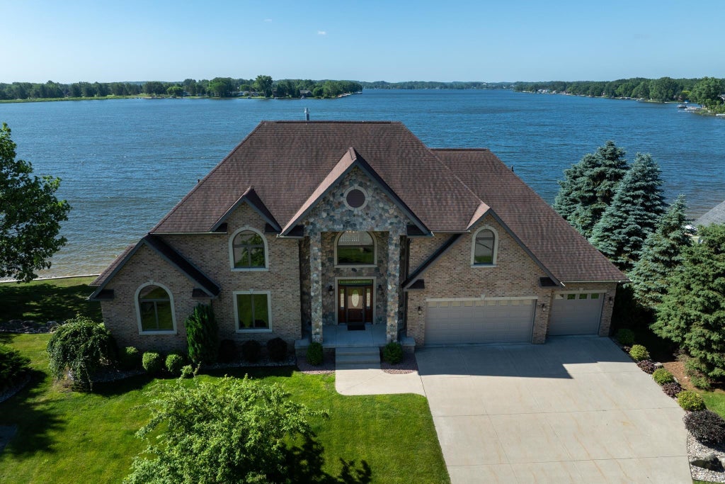 Welcome to luxury lakefront living at its finest! This beautiful waterfront home is located on Lake Isabella, a private 800-acre all-sports lake. This 4-bedroom, 4.5-bath custom residence with a 3-car garage sits on a professionally landscaped 1-acre lot with 210 feet of shoreline. Built to the highest standards, the home features a brick and real stone faƒ §ade, granite countertops throughout, and a stylish blend of ceramic tile, marble, hardwood, and carpet. The grand two-story foyer opens to a spacious great room with cathedral ceilings, a natural stone fireplace, and a dramatic wall of windows showcasing breathtaking lake views. The open-concept layout connects the great room, breakfast nook, and kitchen, which features a lake-facing center island. A formal dining room and wood-paneled study-both with water views-offer additional elegant living spaces. The first-floor primary suite includes cathedral ceilings and a walk-in closet, while the second floor boasts a guest suite with a private lake-view balcony. An exposed catwalk connects the suite to a large loft, two additional bedrooms, a full bath, and a second study. The finished walkout lower level is ideal for entertaining, offering a wet bar with granite counters, pool table, home theater with Bose sound system, and an infrared sauna. A sliding door leads to a patio, stone-lined seawall, and sandy beach. Energy-efficient with 2x6 exterior walls, Anderson windows, geothermal heating and cooling, and a standby whole-house generator. Enjoy over 500 sq ft of composite decking across the lakeside of the home. As a member of the Isabella Property Owners Association, youll have access to The Pines Golf Course with clubhouse and restaurant, private airstrip, tennis courts, 22+ parks, and a campground with adjacent storage facilities. This home blends timeless elegance with modern comfort.