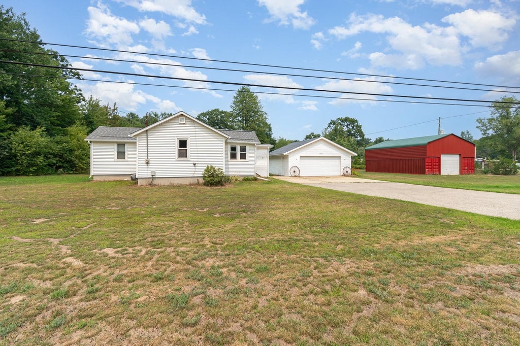 Charming 2-bedroom home on over 2 acres with two garages and a unique shipping container building perfect for a studio or workshop. Enjoy peace of mind with a newer roof, septic system, and walk-in shower. A fenced area offers space for pets. Ideal for those seeking privacy, functionality, and creative space to call your own!