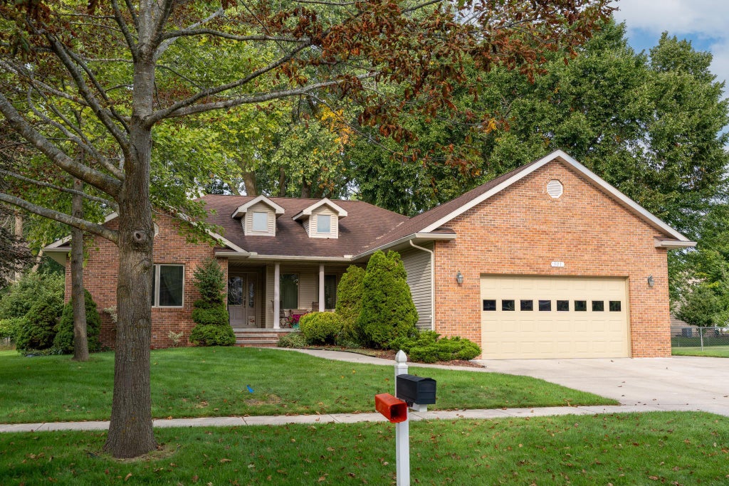 Built in 2003, this custom-built ranch features 2,200 square feet on the main level and has a durable exterior of brick and metal siding for low-maintenance practicality. The beautiful, covered porch offers a warm welcome. As you enter through the foyer, you will see the living room offers the sophistication of coffered ceilings and a gas fireplace. This home is a rare find in that it has four bedrooms all on the main level. The primary bedroom is spacious and offers a private bathroom with a jacuzzi tub, shower and a walk-in closet. The other bedrooms are on the other side of the house for privacy and share a full guest bathroom. With its circular flow of the living room, dining and kitchen, entertaining is easy here! There is an abundance of storage space in this house. The lower level has a finished family room but otherwise is a blank slate with 10' ceilings offering much opportunity to finish as desired by the new homeowner. This home sits on a corner lot, has a sprinkler system for a lush lawn and has a fenced in yard.