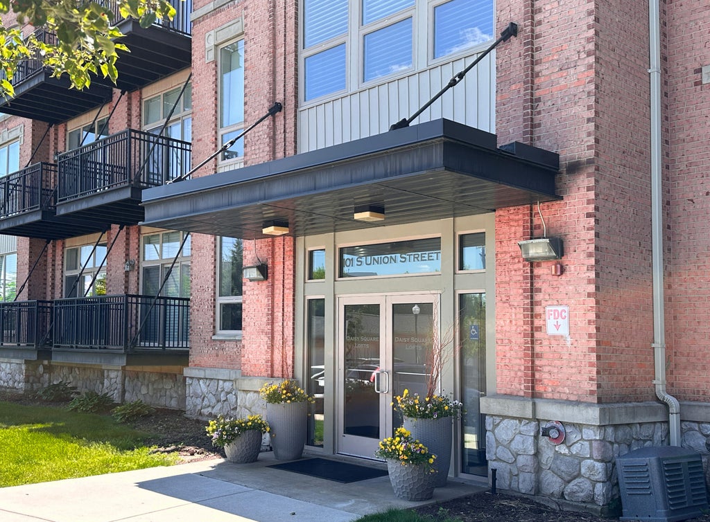 Just minutes from Plymouth's Booming Downtown District with seasonal festivals, parks, bars, restaurants, farmers markets and more sits this Urban Worry-free first floor loft in the popular Daisy Square Community offering a unique & maintenance free lifestyle. A cozy interior combined with exposed ductwork and 10 foot ceilings give this unit a contemporary aesthetic, a perfect blend to meet current trends. An over-sized Doorwall brings in tons of natural light and leads out to a private balcony to enjoy some fresh air.Modest association fees, fresh Paint, updated electrical outlets, New stackable washer/dryer and a complete Ensuite bathroom remodel featuring top of the line finishes including heated floors make this unit turn-key and ready to call home! Schedule your showing today!