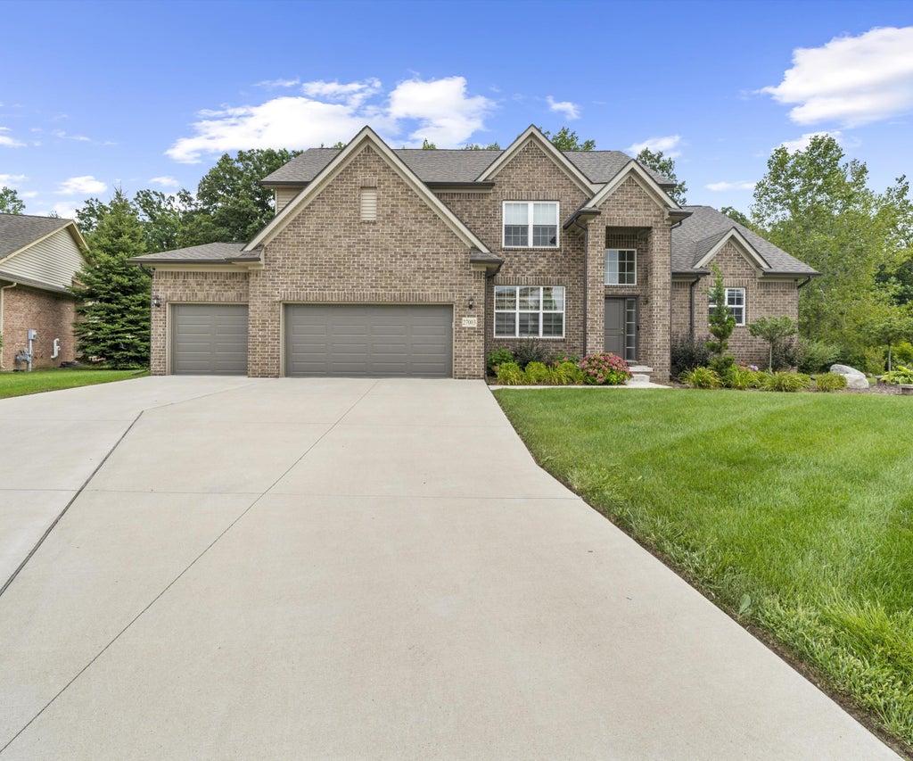 Built in 2021 with over $30K in upgrades. Features include main floor primary suite with ceramic tile bath & freestanding soaking tub, 8'-10' poured basement walls, bath prep & generator transfer switch, 3-car garage with upgraded 16' x 7' & 8'x7' insulated door, Pella windows & 3'' Millican Newtown Plank flooring. Kitchen includes granite countertops & soft-close cabinets. The Greatroom features a high ceiling, fireplace with upgraded Embradora Dark surround, interior TV plug, & dual-story windows with motorized blinds. Elegant stained stair railing, recessed lights, ceiling fans, French doors at study, laundry room cabinets, upgraded carpet padding, and more. Home also has in ground sprinkler system. Full list of upgrades in attachments or available upon request. Data & measurements approx. & not guaranteed. BUYER/BATVI.