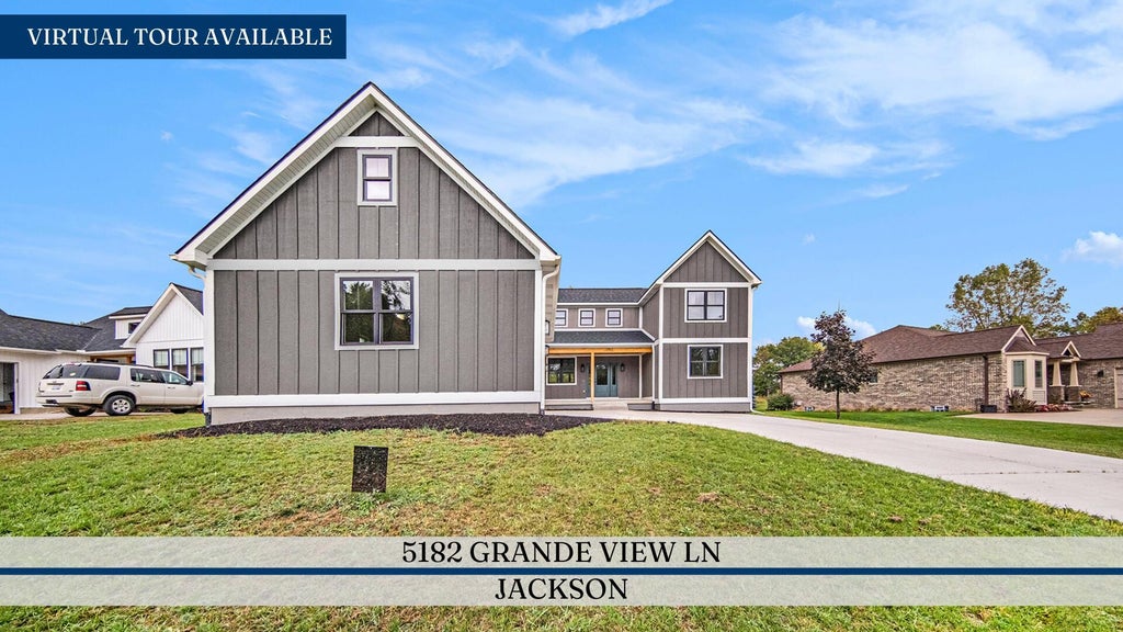 **Seller offering a concession at closing toward closing costs, temporary rate buy down or other lender approved credits.*** Welcome to 5182 Grande View Lane. If you're looking for a custom-built home on an award-winning golf course, this is one you won't want to miss. This home is one of three custom floor plans available for immediate occupancy at The Grande Golf Club in Jackson. With over 2,000 square feet of living space, this model offers a smart, spacious layout featuring a main-floor primary suite, vaulted ceilings, a three-car garage, and stunning golf course and waterfront views from the covered back porch. Upstairs, you'll find two additional bedrooms connected by a Jack-and-Jill bathroom, a bonus loft space, and a balcony that overlooks the scenic surroundings. The open-concept main floor is ideal for entertaining, and the full unfinished basement--already plumbed for a bathroom--offers room to grow and customize.If this floor plan isn't quite what you're looking for, two additional designs are currently available, or you can choose a lot and build your own custom home with a variety of available